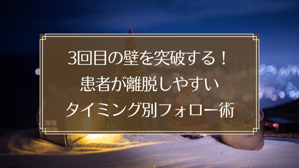 このブログでは、患者さんが離脱しやすい3つのタイミングと、それぞれに効くフォロー術を具体的にお伝えします。